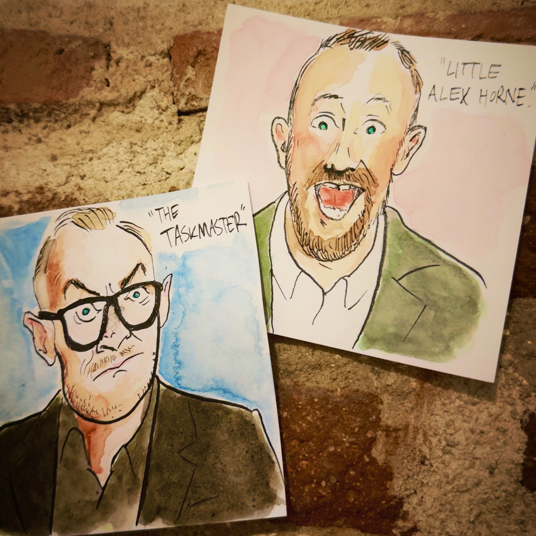 Dip pen/watercolor practice with my 2 favorite TV characters, the Taskmaster and Little Alex Horne. New season (series, Jason!) started last week. I’m in the audience of episode 5!